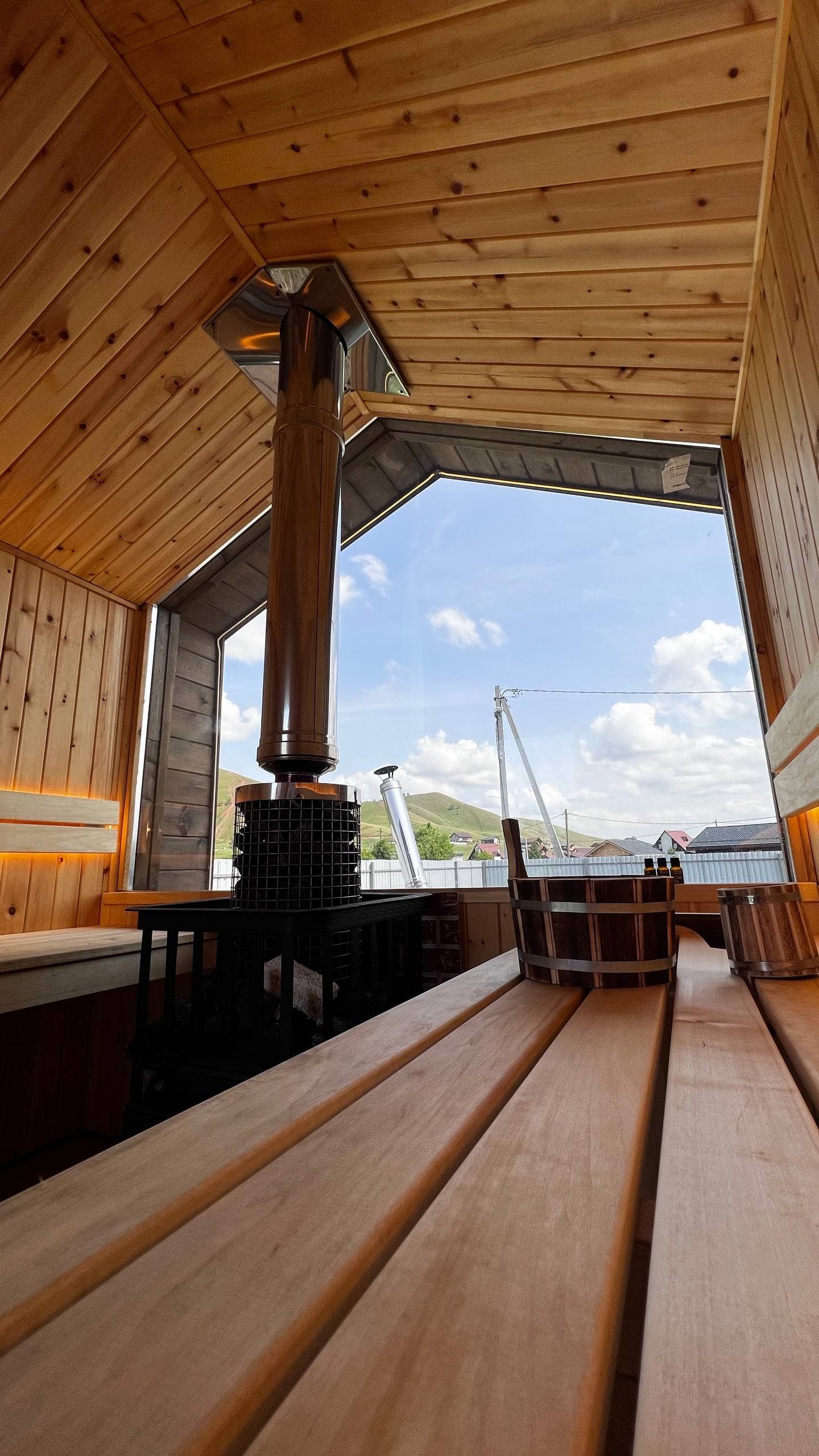 Сибирский кедр служит десятилетиями. На стенках выделяет смолу — натуральный антисептик. Греет мягко, ароматизирует воздух, держит температуру.