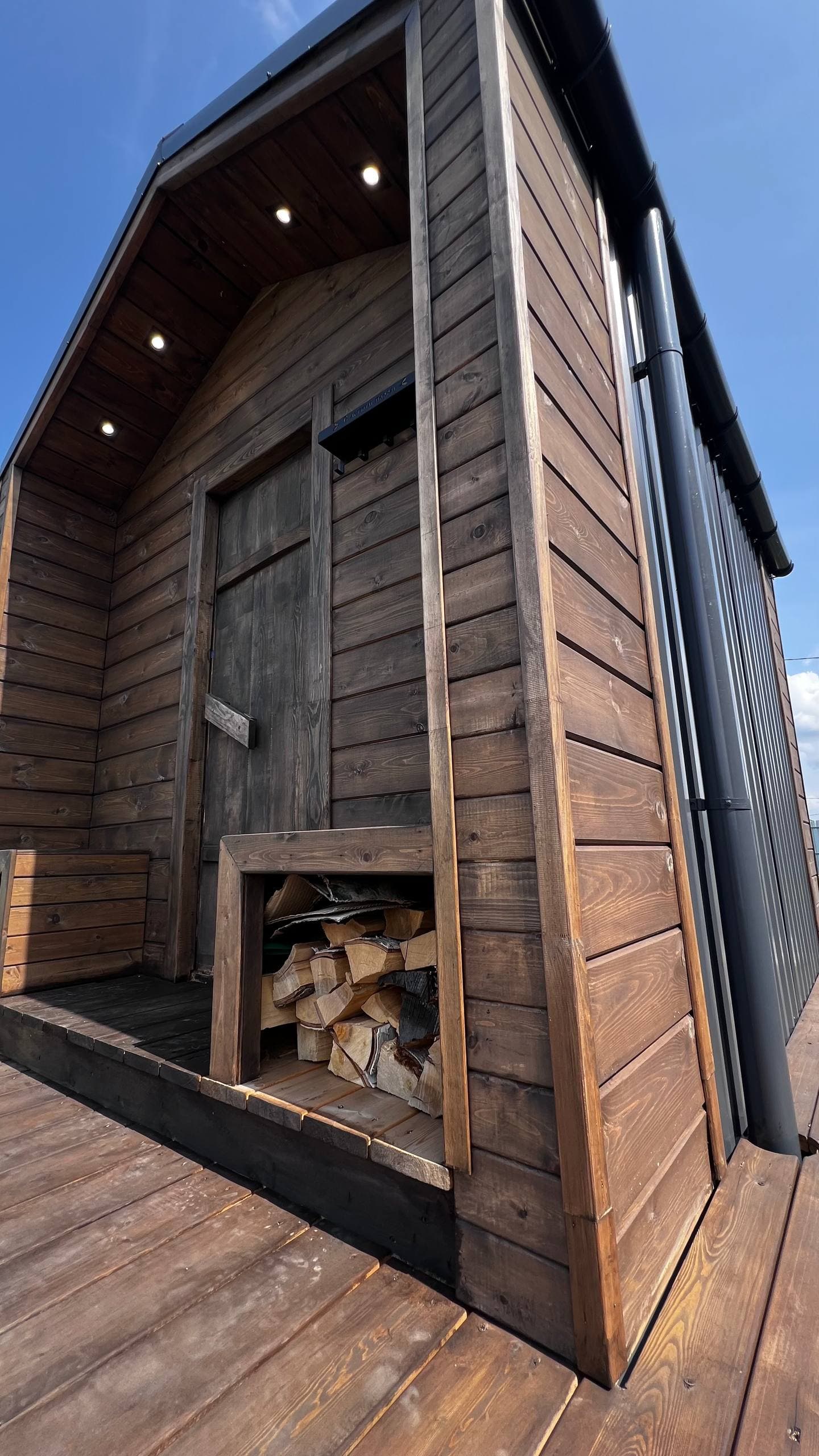 Внешний нагрев на дровах. Открытое небо, вода, тёплая чугунная купель. К приезду — готов.